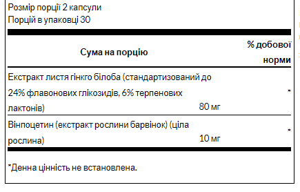 Кожна капсула містить 40 мг стандартизованого гінкго та 5 мг вінпоцетину