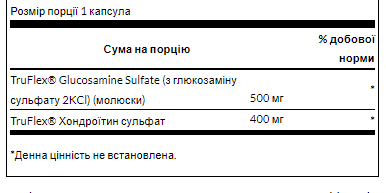 Підтримує цілісність, рухливість і гнучкість суглобів. Допомагає захистити хрящ. Підтримує здорову сполучну тканину. З потужними 500 мг сульфату глюкозаміну та 400 мг сульфату хондроїтину в кожній капсулі, всього три на день, ви отримаєте міцну основу для підтримки здоров'я суглобів.