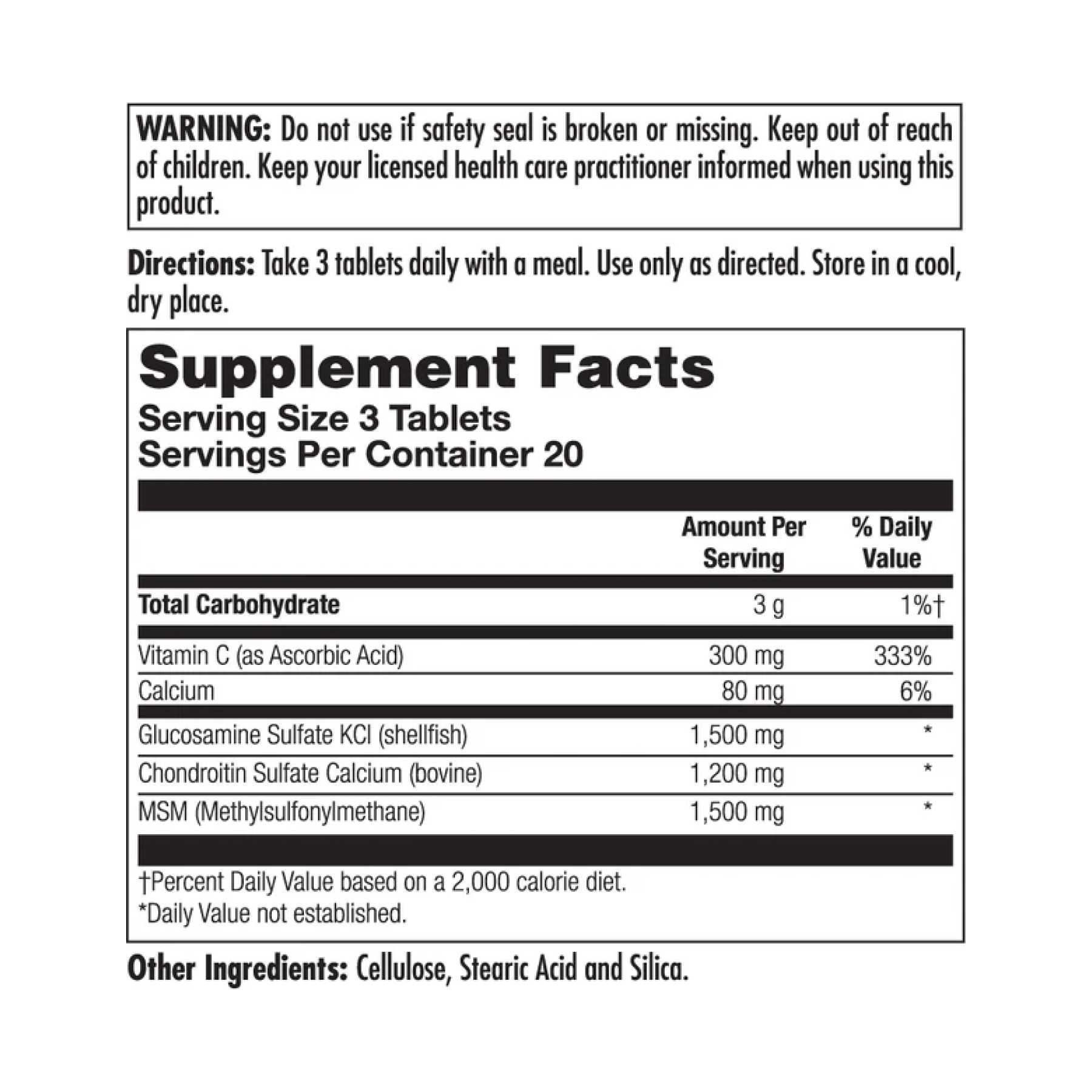 Інформація про продукт. Глюкозамін, хондроїтин і МСМ KAL® — це вдосконалена комбінована добавка для суглобів, призначена для забезпечення поживної підтримки для нормального комфорту суглобів. МСМ є органічним джерелом сірки, необхідної для нормального формування хрящів. Глюкозамін підтримує еластичність колагену, а хондроїтин забезпечує змащення, щоб полегшити рух суглобів. Вітамін C підтримує здоров’я сполучної тканини та забезпечує антиоксидантну підтримку.