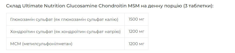 Ultimate Nutrition Glucosamine Chondroitin MSM 90 табл гальмує будь-які патологічні процеси в кістковій та хрящовій тканинах, прискорює їх відновлення, покращує фосфорно-кальцієвий обмін. Пригнічує активність ферментів, що викликають ураження хрящової тканини, стимулює синтез хондроцитів, сприяє регенерації суглобової сумки та хрящових поверхонь суглобів, збільшує вироблення внутрішньосуглобової рідини, знижує болючість та збільшує рухливість уражених суглобів.