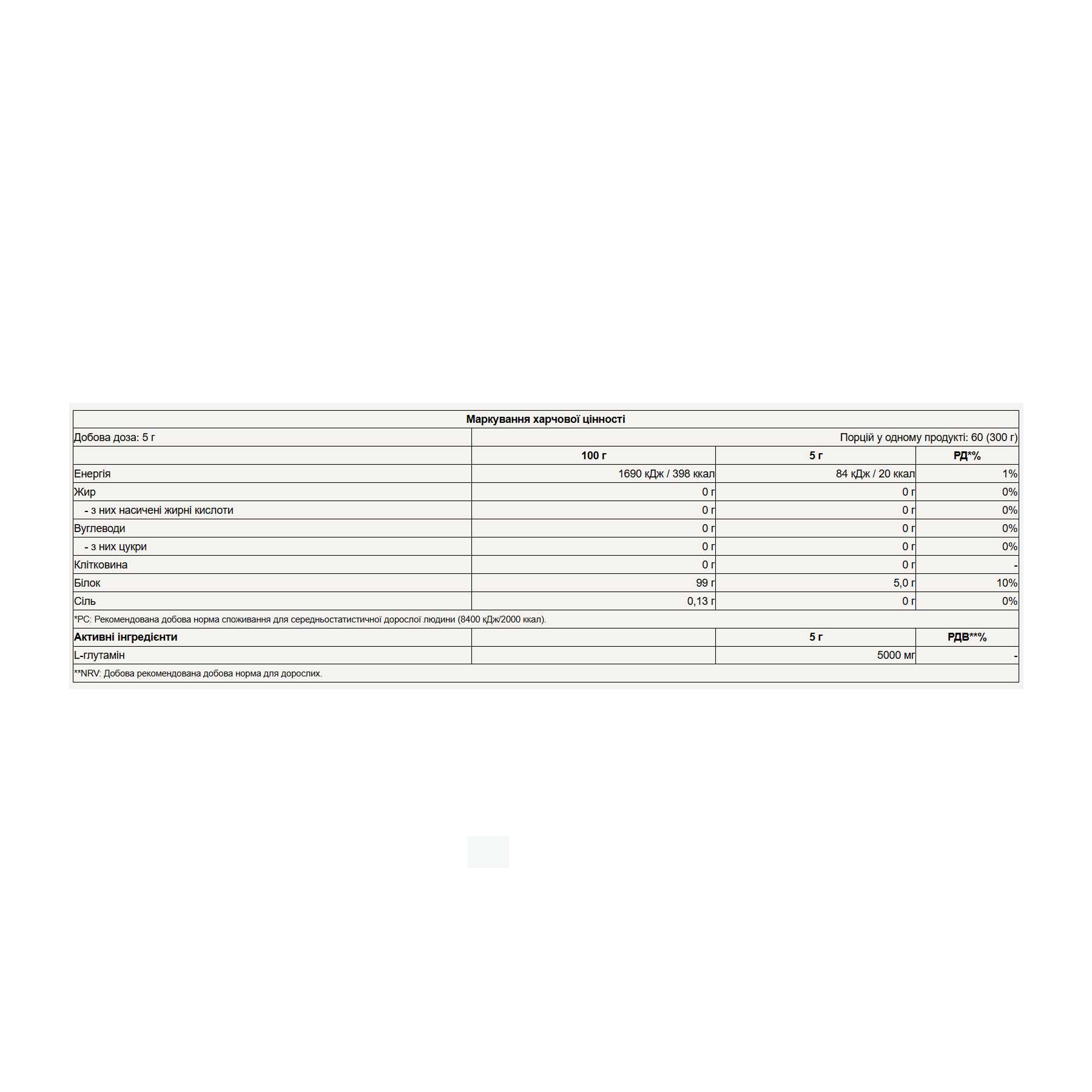 100% чистий L-глютамін без домішок