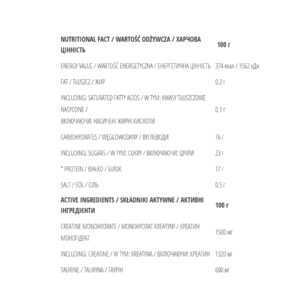 L-глютамін, регулятор кислотності – лимонна кислота, ароматизатор, таурин, підсолоджувачі: сукралоза, ацесульфам; піридоксину гідрохлорид (вітамін В6).