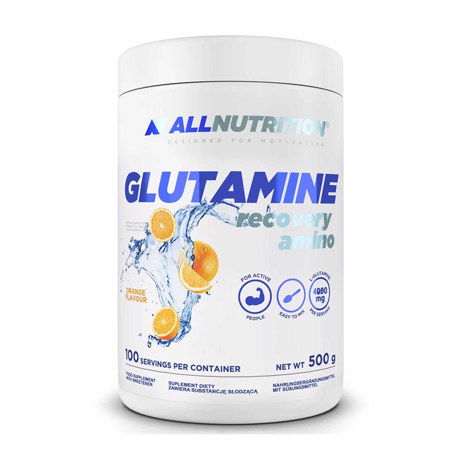 ALLNUTRITION GLUTAMINE RECOVERY AMINO – це харчова добавка, що містить L-глютамін, збагачений амінокислотою таурином. Глютамін є однією з трьох найважливіших і найпоширеніших амінокислот в організмі людини, відіграючи вирішальну роль у його щоденному функціонуванні, особливо у фізично активних людей.