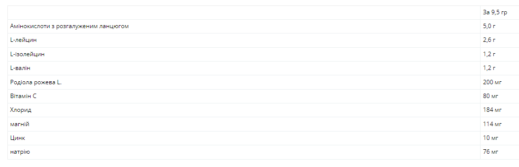 На додаток до вмісту BCAA: лейцину, ізолейцину та валіну, Gold Standard BCAA Train & Sustain є сумішшю вітаміну С, магнію та BCAA, призначених для використання безпосередньо перед і під час тренування, як під час силових тренувань, так і в дні кардіо. Новизна цього продукту полягає в тому, що він також збагачений електролітами 374 мг.