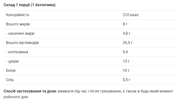 · 26,5 г вуглеводів, у тому числі, 13 г цукру;