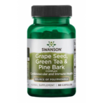 Swanson Grape Seed, Green Tea & Pine Bark — це економічна формула, яка поєднує потужні поліфеноли зеленого чаю з олігомерними проантоціанідинами, що містяться в сосновій корі та виноградних кісточках, для створення синергетичної дії, що забезпечує широкий спектр захисту.
