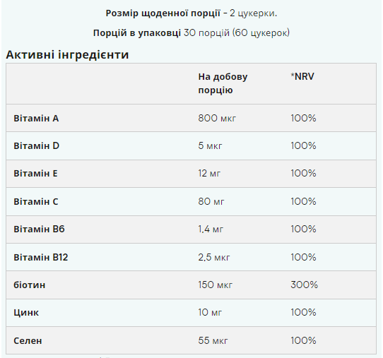 сприяє підтримці здоров'я волосся, нігтів і шкіри