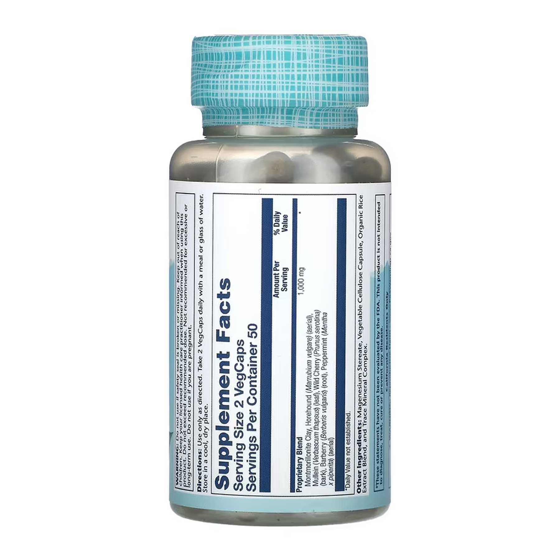 Кожна порція (2 VegCaps) містить суміш 1 000 мг спеціально підібраних інгредієнтів: монтморилонітова глина, шавлії крилата (horehound), листя шавлії (mullein), кора дикої вишні (wild cherry), корінь барбарису та м’ята.