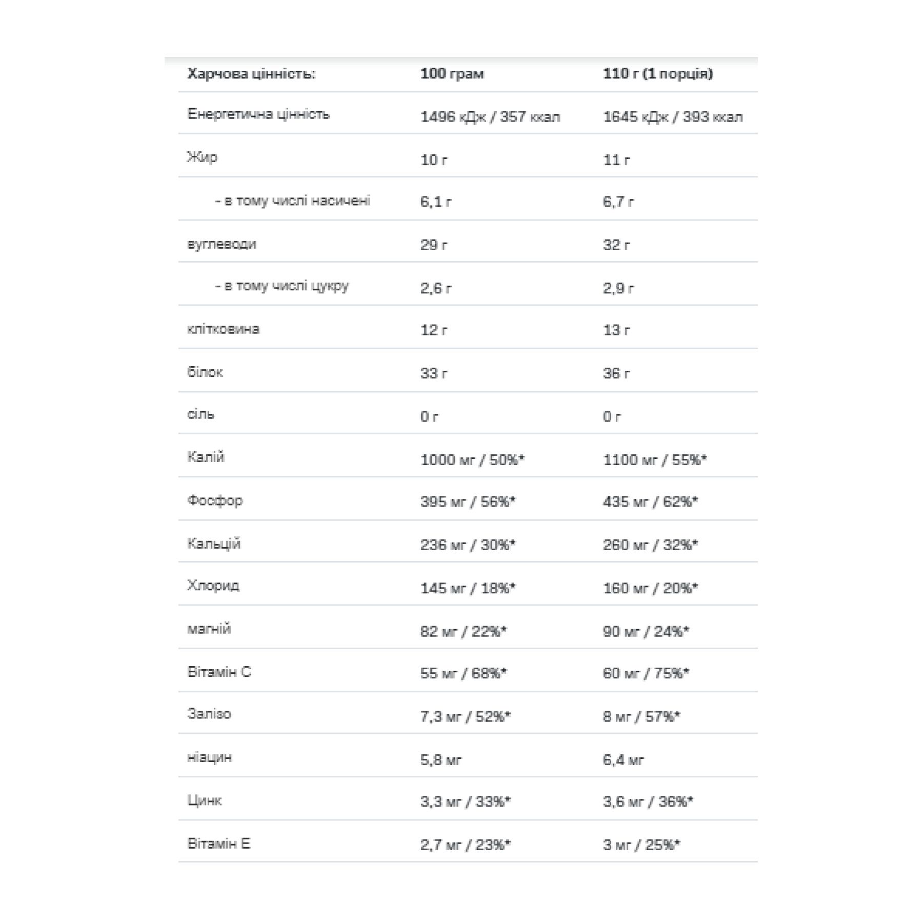 Повноцінне, високобілкове харчування зі смаком лісових фруктів, шоколаду, печива з додаванням концентрату сироваткового протеїну та вівсяних пластівців, збагачене вітамінами та мінералами. Містить підсолоджувачі. Без додавання цукру. Містить природні цукру. Підходить для вегетаріанців. Не вживайте, якщо у вас алергія на будь-який з інгредієнтів продукту.