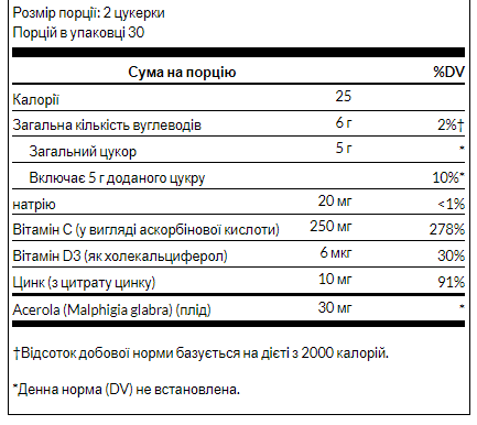 Кожна порція містить потужну дозу вітамінів C і D, які сприяють міцній і здоровій імунній відповіді. Додаткова імунна підтримка забезпечується у вигляді цинку, важливого мінералу, який відіграє вирішальну роль у належному функціонуванні багатьох систем організму, включаючи розвиток і функціонування імунних клітин .