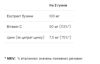 100 мг екстракту бузини на 2 гумки