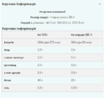 Розмір порції – 1 мірна ложка (25г) Порцій в упаковці – 40 (1кг), 100 (2.5кг), 160 (4кг) Поживна Цінність У 100г У порції (25г) 0.3 г 0.1 г з яких насичених 0.3 г 0.1 г Вуглеводів 2.5 г 0.6 г з яких цукру 2.5 г 0.6 г Білка 90 г 23 г Солі 0.50 г 0.13 г