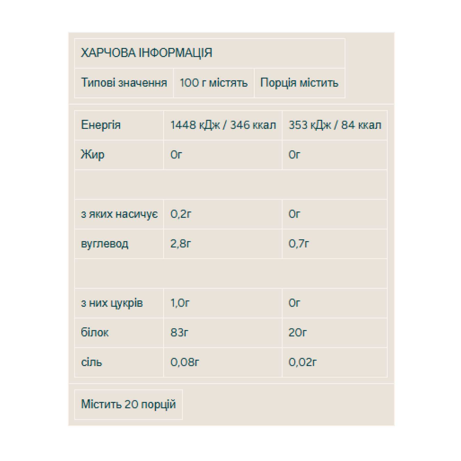 20 г білка на порцію з гідролізованого ізоляту сироваткового білка, що швидко засвоюється