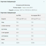 Розмір порції – 1 мірна ложка (25 гр) Порцій в упаковці – 40 (1 кг), 100 (2.5 кг), 200 (5 кг) Харчова цінність У 100 гр У порції *RI Калорійність 1740 кДж/412 ккал 435 кДж ккал 5% Жир 7.5 гр 1.9 гр 3% з яких насиченого 5.0 гр 1.3 гр 6% Вуглеводи 4.0 гр 1.0 гр 0.5% з яких цукру 4.0 гр 1.0 гр 1% Протеїн 82 гр 21 гр 4 Рекомендована норма споживання середнього дорослого (8400 кДж/2000 ккал) Інформація дана для версії без смаку, в інших варіантах значення можуть відрізнятися до 15%
