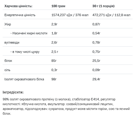 ALLNUTRITION ISOLATE PROTEIN, як і інші білкові добавки, призначений для поповнення потреб у білку та контролю маси тіла. ALLNUTRITION ISOLATE PROTEIN завдяки обмеженому вмісту додаткових інгредієнтів забезпечує надходження великої кількості чистого сироваткового протеїну. Це, безперечно, важливо для фізично активних людей. Низька калорійність дозволяє ALLNUTRITION Isolate Protein нарощувати суху масу м'язів без накопичення непотрібного жиру.
