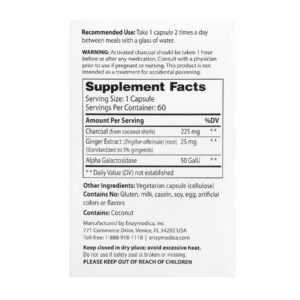 Штрихкод: 033674020708 Зменшує періодичне газоутворення Користь рослин 560 мг в порції з двох капсул Дієтична добавка Без глютену Пов’язує небажані