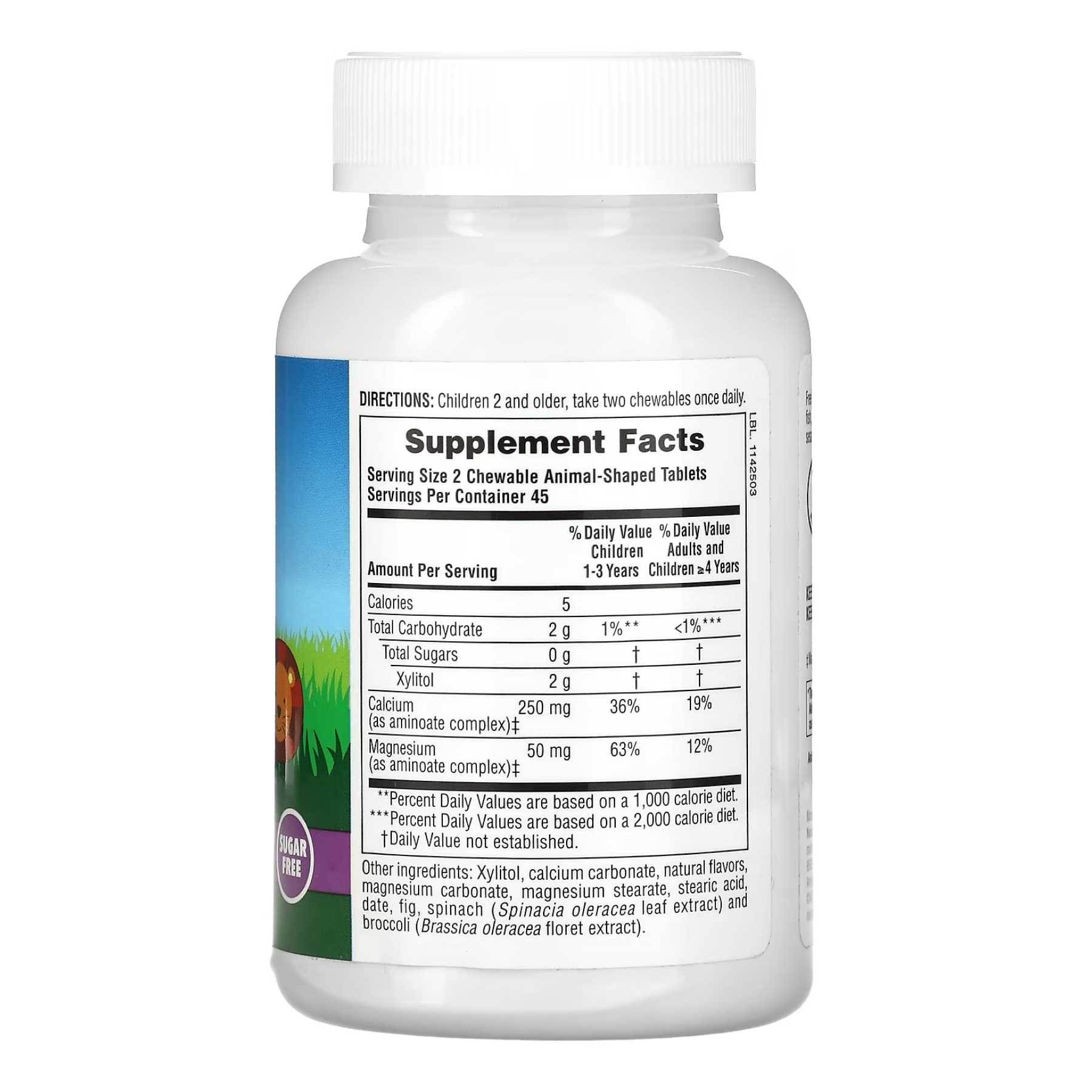 Жувальні таблетки з кальцієм без цукру Animal Parade — найпростіший і найзручніший спосіб забезпечити дитячий організм кальцієм, який необхідний для здорового розвитку та загального здоров’я. Жувальні таблетки з кальцієм без цукру Animal Parade чудової якості містять концентрати цільних продуктів: шпинату, броколі, фініків та інжиру. Це натуральна добавка, якості якої можна довіряти. Жувальні таблетки з кальцієм без цукру Animal Parade мають чудовий смак ванільного морозива та допомагають підтримувати необхідний рівень кальцію в організмі!