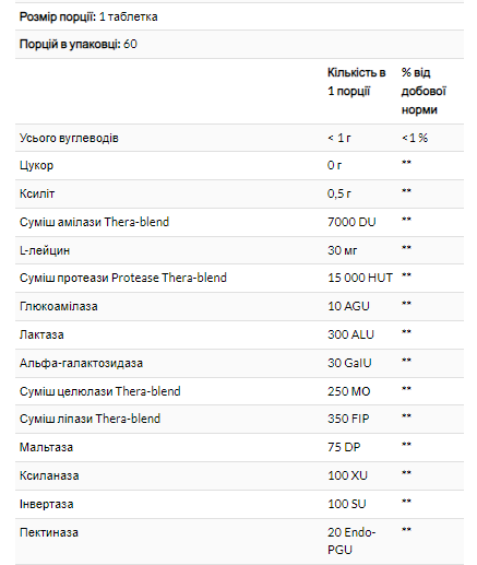 Thera-blend — це ексклюзивний процес, який об’єднує кілька штамів ферментів, які працюють за певних рівнів кислотності, що гарантує високу ефективність їх дії.