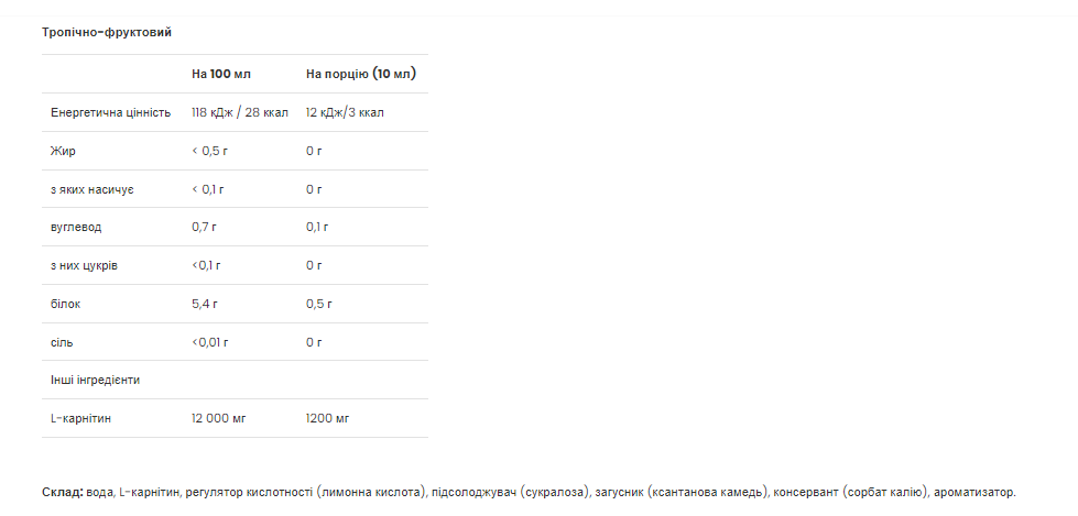 L-Carnitine Concentrate – 1000ml Tropical