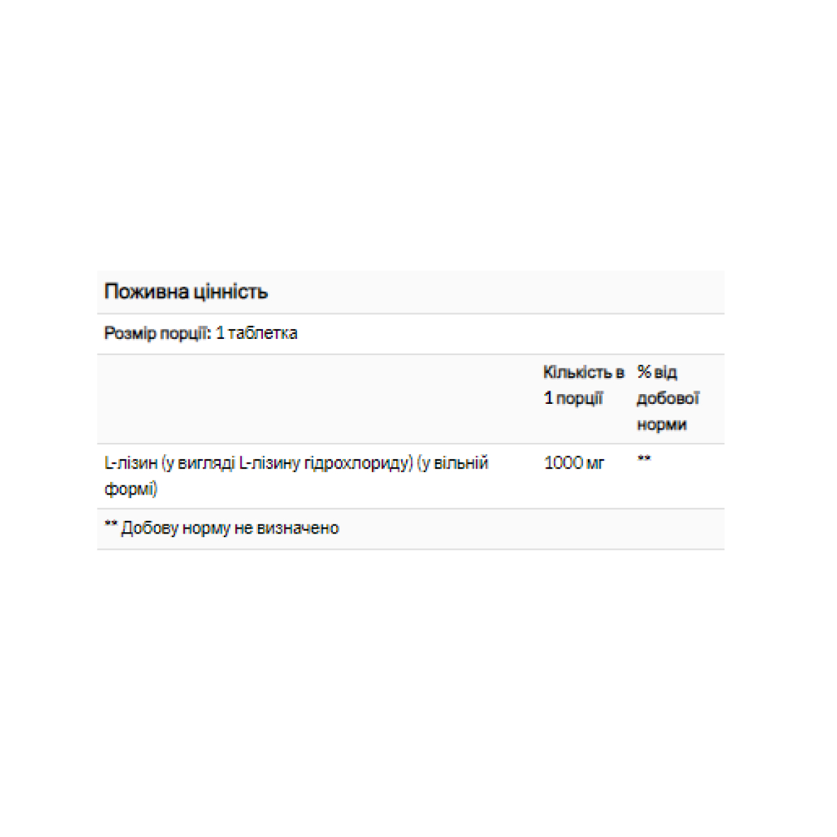 L-лізин — незамінна амінокислота, яка підтримує здоров’я тканин шкіри. Це сприяє цілісності шкіри та губ і використовується організмом для виробництва колагену. Ця формула містить L-лізин у вільній формі для сприяння оптимальному всмоктуванню та засвоєнню.