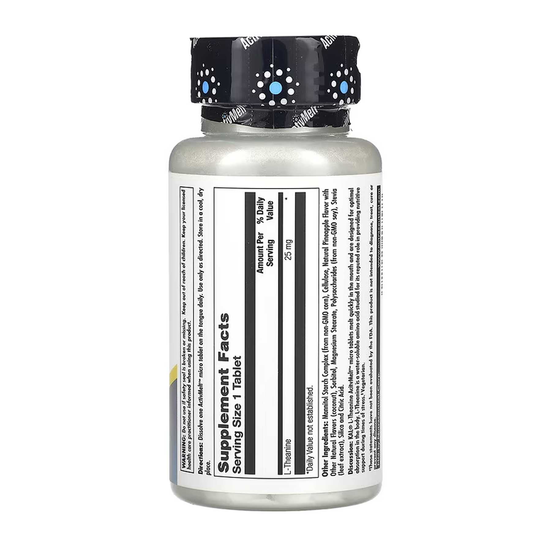 Мікротаблетки з L-теаніном ActivMelt™ KAL® швидко тануть у роті та розроблені для оптимального засвоєння організмом. L-теанін — це водорозчинна амінокислота, яка вивчена на предмет її ролі в забезпеченні поживної підтримки під час стресу.