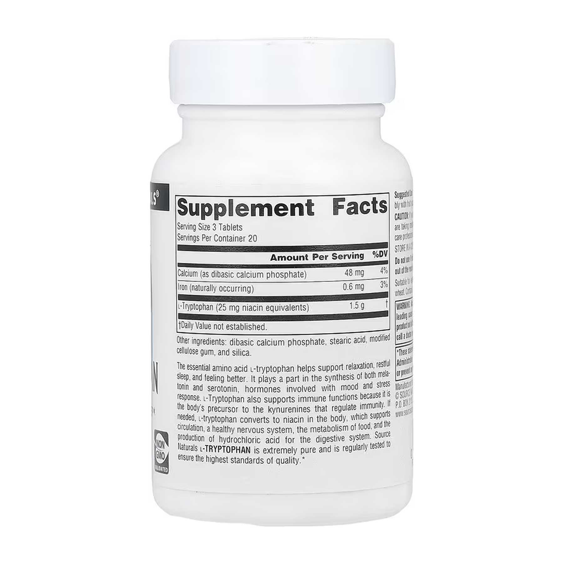 Незамінна амінокислота L-триптофан допомагає підтримувати розслаблення, спокійний сон і покращує самопочуття. Вона відіграє роль у синтезі мелатоніну та серотоніну – гормонів, пов’язаних із настроєм та реакцією на стрес. L-триптофан також підтримує імунні функції, оскільки він є попередником кінуренінів, що регулюють імунітет. За потреби L-триптофан перетворюється в організмі на ніацин, який підтримує кровообіг, здорову нервову систему, метаболізм їжі та вироблення соляної кислоти для травної системи. L-триптофан від Source Naturals надзвичайно чистий і регулярно тестується на відповідність найвищим стандартам якості.