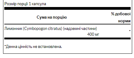Добавка Full Spectrum Lemongrass є частиною трав'яної традиції, яка сягає століть. Як і інші трави в лінії Swanson Premium Full Spectrum, ця дієтична добавка Lemongrass є на 100% чистою традиційною травою. Нічого особливого, просто чистий, високоякісний лимонник за доступною ціною… те, що ви очікуєте від Swanson Health Products. Його отримують із рідного місця, перевіряють на чистоту та безпеку та виробляють під найсуворішим контролем якості. Продовжуйте трав'яну традицію та побудуйте міст природного здоров'я між минулим, сьогоденням і майбутнім за допомогою Full Spectrum Lemongrass.
