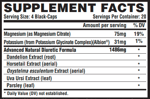 LIPO-6 BLACK DIURETIC – це швидкодіючий повністю натуральний діуретик, що допомагає виводити з організму зайву воду. Це може зменшити здуття живота та покращити чіткість, підтримуючи втрату підшкірної води (з-під шкіри). LIPO-6 BLACK DIURETIC – відмінний вибір, щоб швидко позбутися цього м'якого, одутлого вигляду.