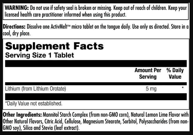 Lithium Orotate 5mg – 90 tabs Lemon Lime