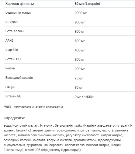 L-цитрулін, відомий своєю ефективністю, і L-аргінін з додаванням бета-аланіну роблять цю суміш надзвичайно ефективною під час тренувань.