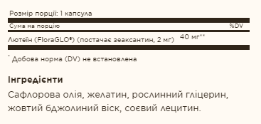 Наукові дані свідчать про те, що лютеїн допомагає фільтрувати синє світло високої енергії від сонця та штучного світла. Лютеїн має антиоксидантні властивості, які допомагають боротися з вільними радикалами. Вільні радикали можуть викликати окислювальний стрес, який може сприяти передчасному старінню клітин. Solgar ® Лютеїн 40 мг розроблено для підтримки здоров’я очей, здорової шкіри та зволоження шкіри.