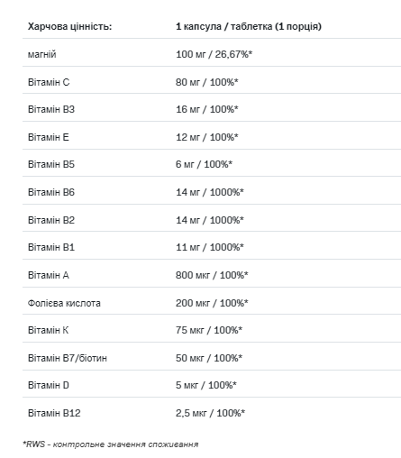 ALLNUTRITION Mag-Vit містить низку інших важливих для організму вітамінів, таких як: