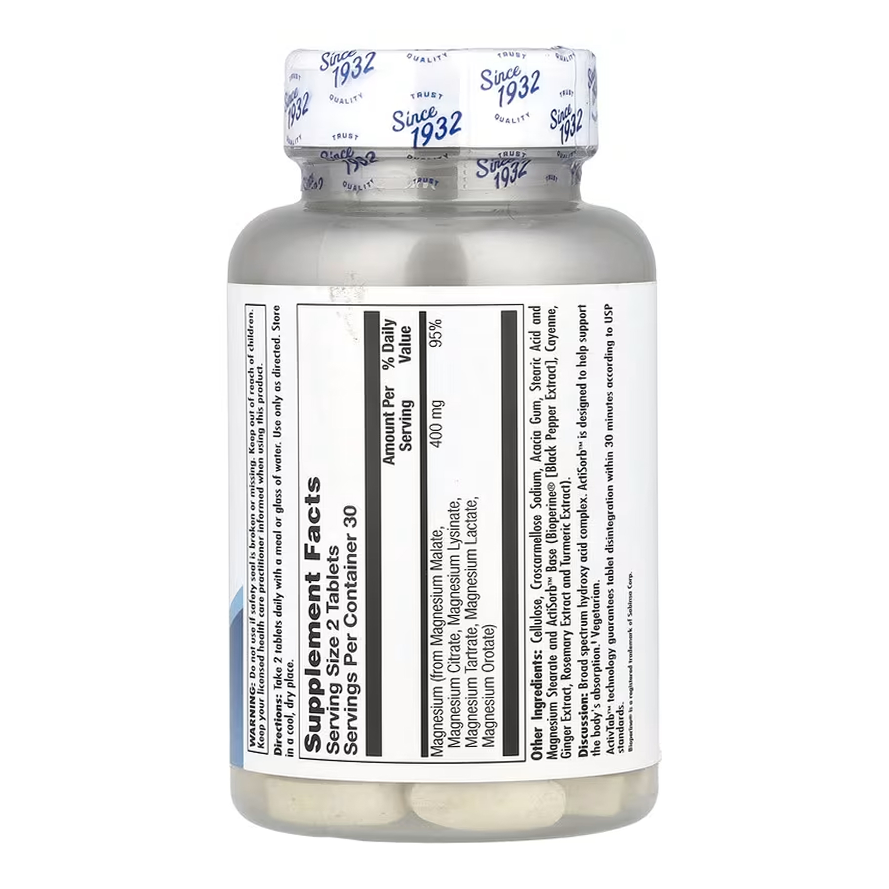 Містить кілька форм магнію для кращого засвоєння (цитрат, оксид, гліцинат та ін.).
