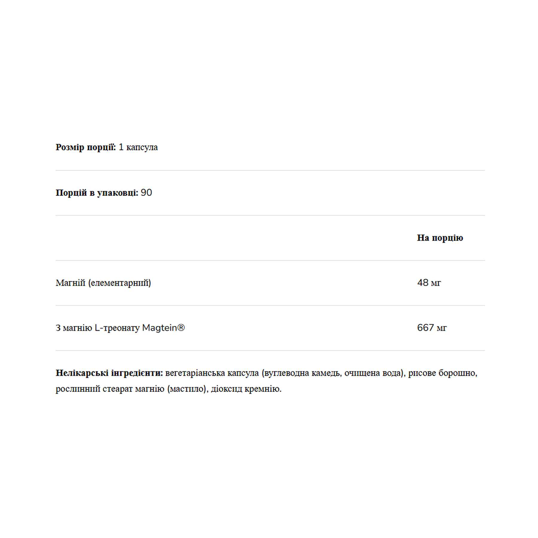 L-треонат магнію входить до лінійки добавок Regenerlife для здорового старіння та довголіття. Він містить 2000 мг L-треонату магнію (еквівалентно 144 мг магнію, що легко засвоюється), що приймається у вигляді трьох легкозасвоюваних вегетаріанських капсул на день. Він не містить ГМО, підходить для веганів і є чудовим вибором для тих, хто хоче доповнити здоровий спосіб життя та активно сприяти когнітивному здоров'ю з віком.