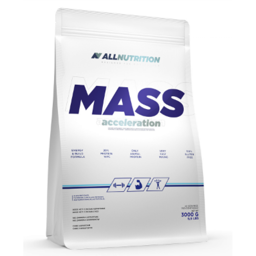 Переваги Mass Acceleration – джерело високоякісного білка; комплекс вуглеводів із різною швидкістю розщеплення; сприяє збільшенню м'язової маси; покращує відновлення після тренування; не містить рослинних білків.