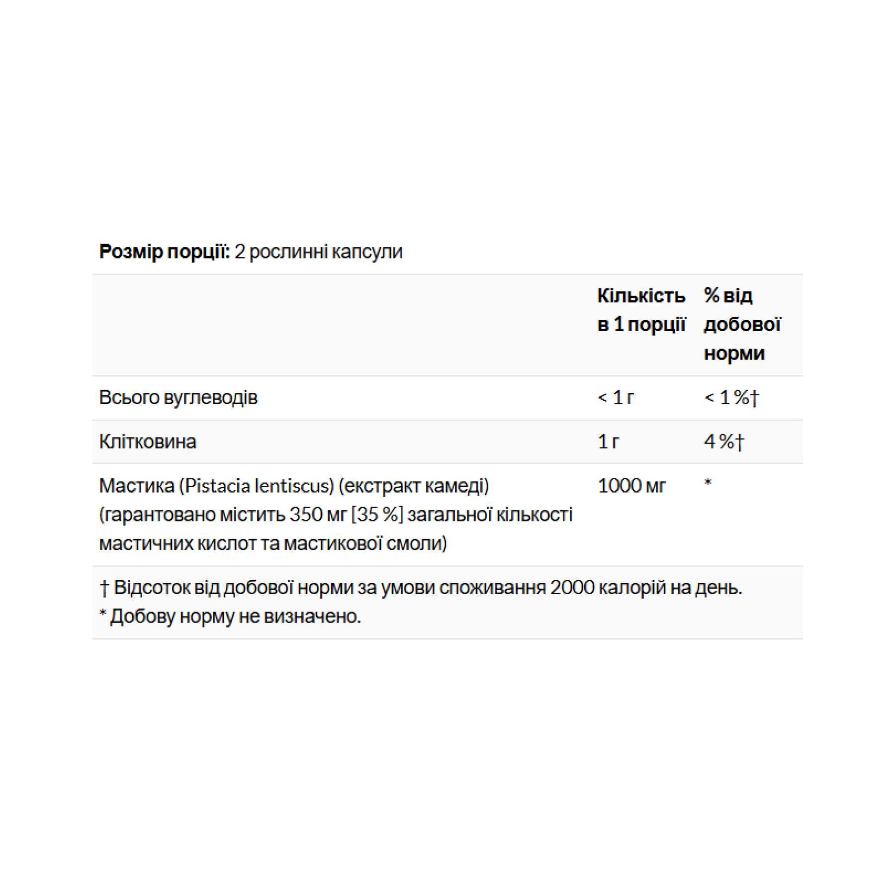 Екстракт мастикової смоли (Mastic Gum Extract) історично використовувалася в культурах середземномор'я завдяки корисним властивостям шлунково-кишкового тракту.