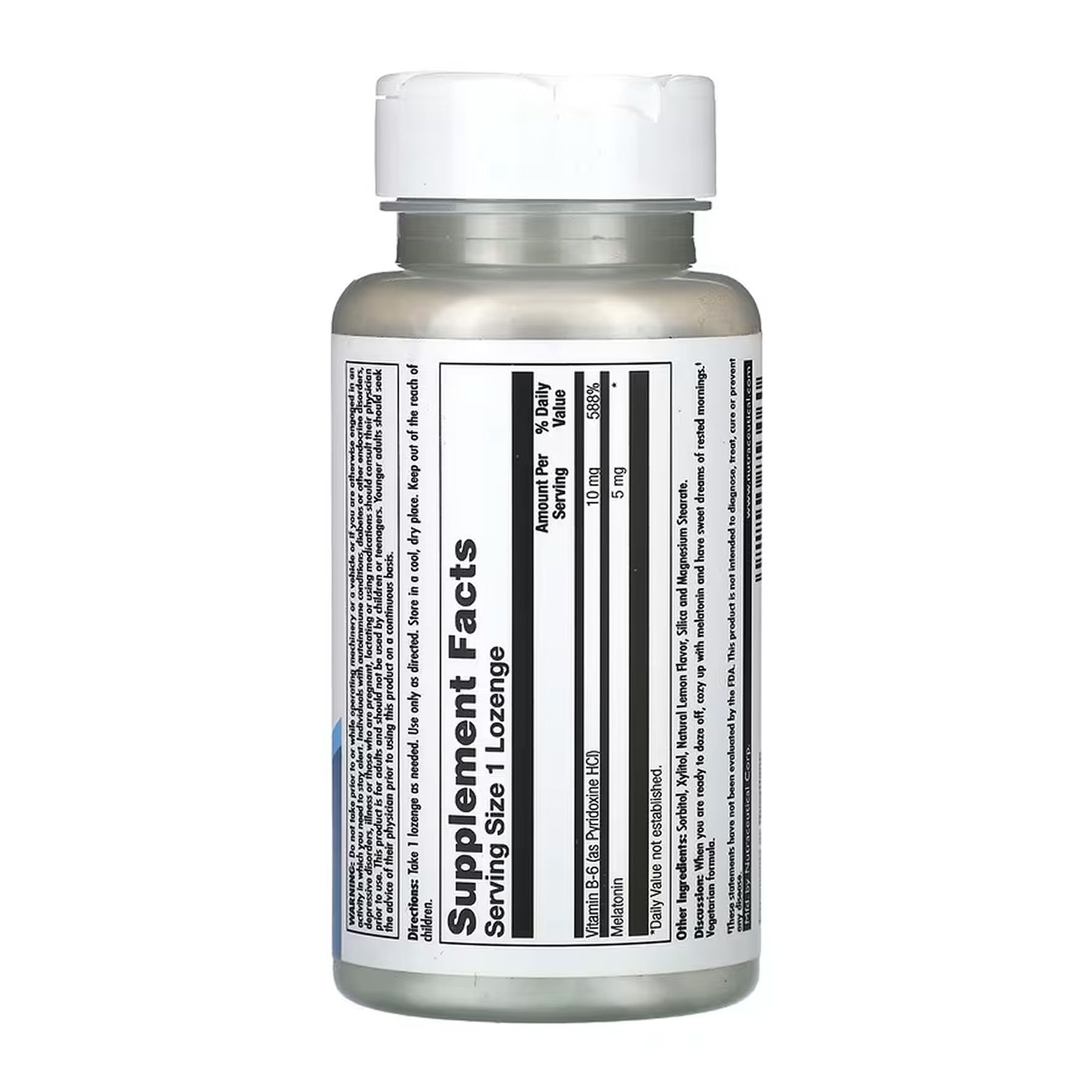 KAL Melatonin 5 mg — це високоякісна добавка у форматі лізингів (lozenges) з приємним натуральним лимонним смаком, яка містить 5 мг мелатоніну в одній лямівці та 10 мг вітаміну B6 для підтримки здорового сну і природного сну пробудження.
