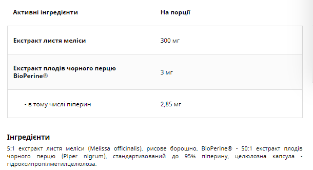 Натуральний екстракт меліси лікарської (Melissa officinalis).