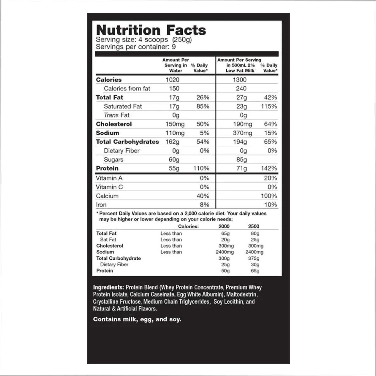 Все просто! Muscle Juice 2544 це один із найкалорійніших гейнерів з чудовим смаком на сьогоднішньому ринку. Разом з Muscle Juice 2544 Ви наростите м'язи, адже у формулі від Ultimate Nutrition міститься 55 г спеціальної протеїнової суміші (ізолята сироваткового протеїну, концентрат сироваткового протеїну, казеїнат кальцію, яєчний білок). Протеїнова суміш дає ефект повільного вивільнення поживних речовин протягом 6 годин, щоб Ваші м'язи не мали потреби в якісному харчуванні. Ростіть м'язи! Порція включає 162 г вуглеводного комплексу найвищої якості від Ultimate Nutrition, 17 г жирів, що містять MCT (тригліцериди із середнім ланцюгом), які збільшать енергетичний рівень і не будуть при цьому перетворюватися на підшкірний жир. MCT дають тривале джерело енергії та не піднімають рівень холестерину.