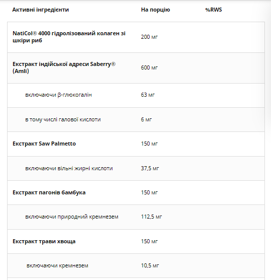 Запатентована формула морського колагену – Naticol® з молекулярною масою 4000 дальтон.