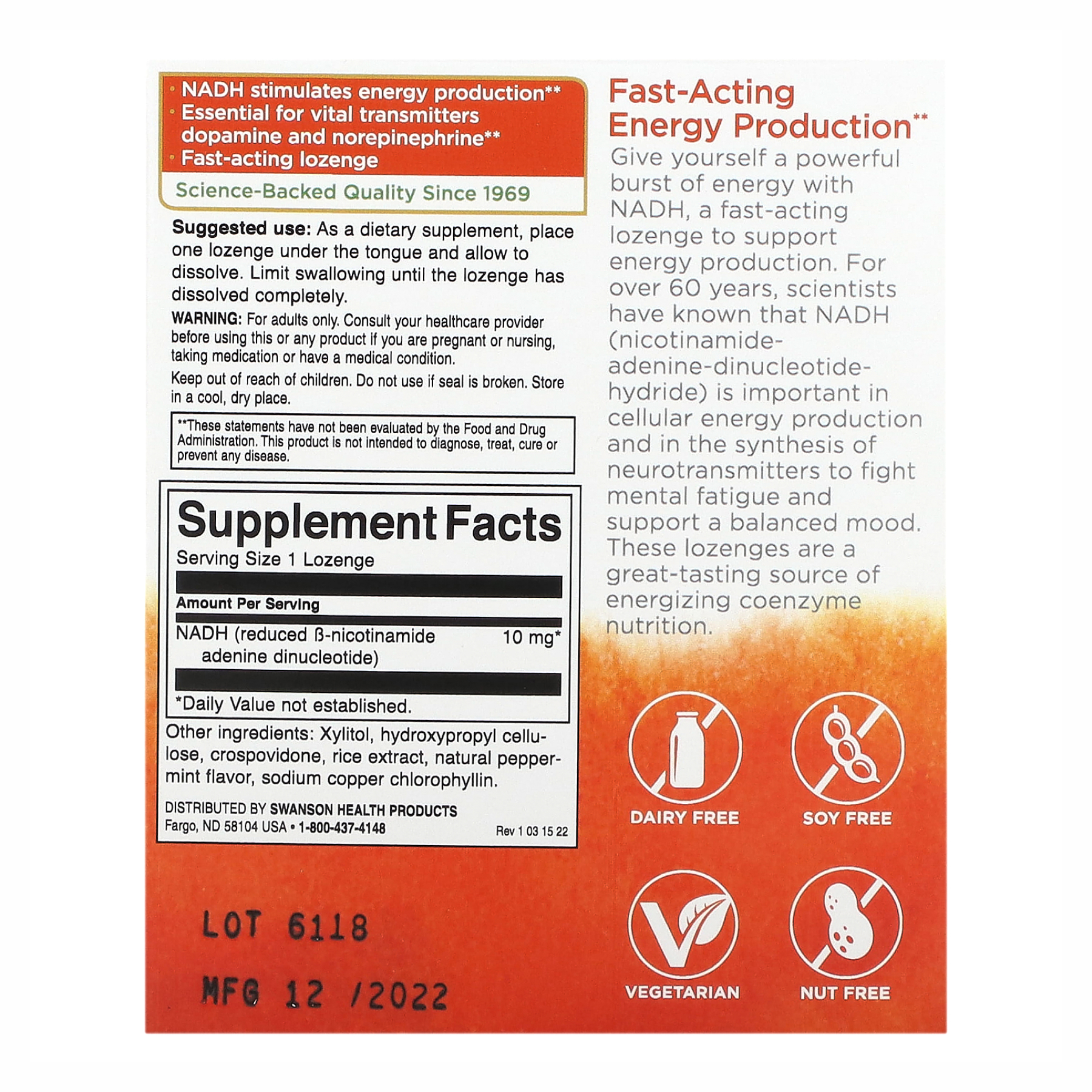 Подаруйте собі потужний приплив енергії за допомогою NADH — швидкодійної пастилки для підтримки вироблення енергії. Уже понад 60 років вчені знають, що NADH (нікотинамід-аденін-динуклеотид-гідрид) важливий для виробництва клітинної енергії та синтезу нейромедіаторів для боротьби з розумовою втомою та підтримки врівноваженого настрою. Ці пастилки — чудове на смак джерело коферментних поживних речовин.