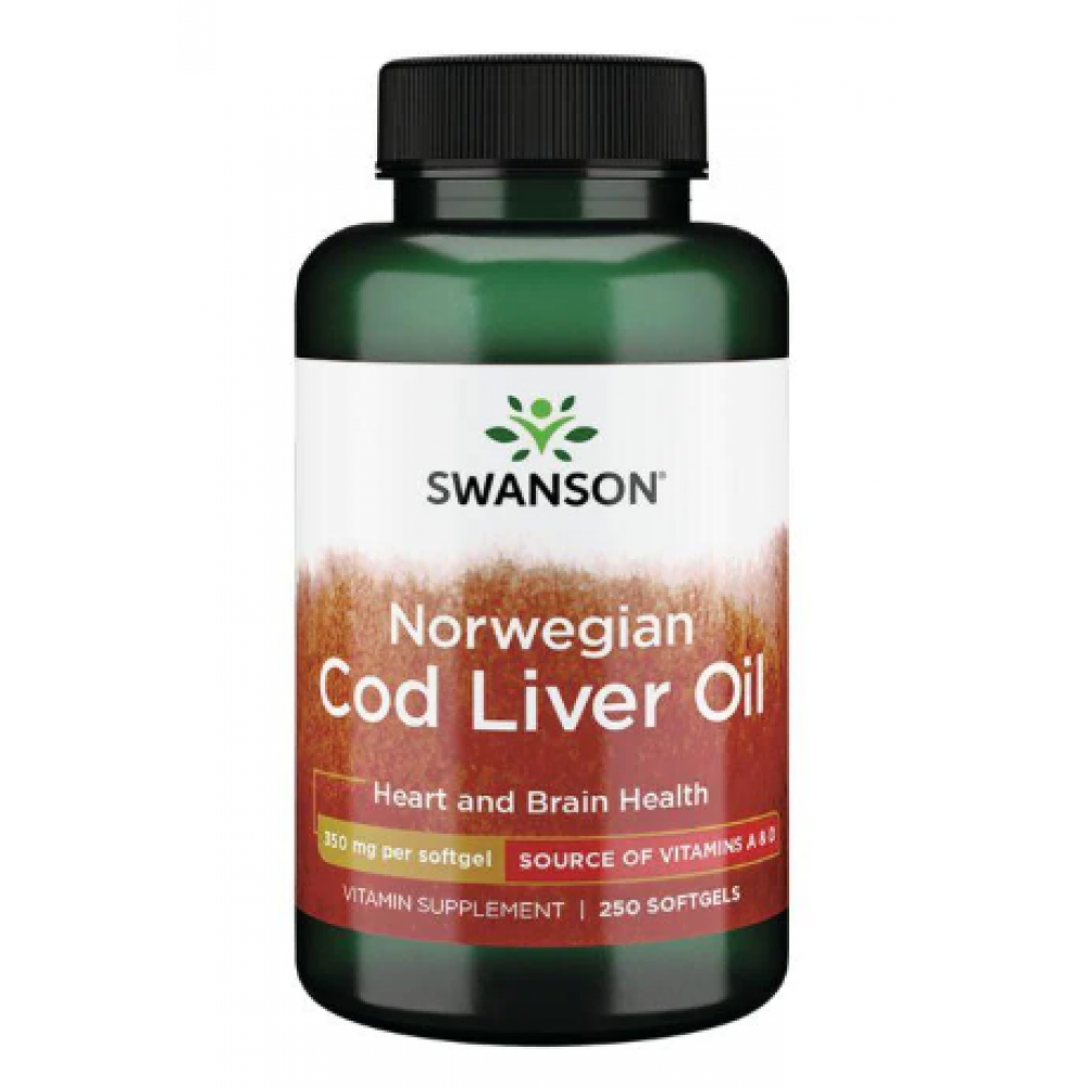 Swanson Cod Liver Oil – багате джерело вітамінів А і D. Ця формула підтримує міцні кістки за допомогою вітаміну D і зміцнює здоров'я очей, шкіри та імунної системи за допомогою вітаміну А. Кожна м'яка капсула з високою біодоступністю містить 1250 МО вітаміну А та 135 МО вітаміну D.