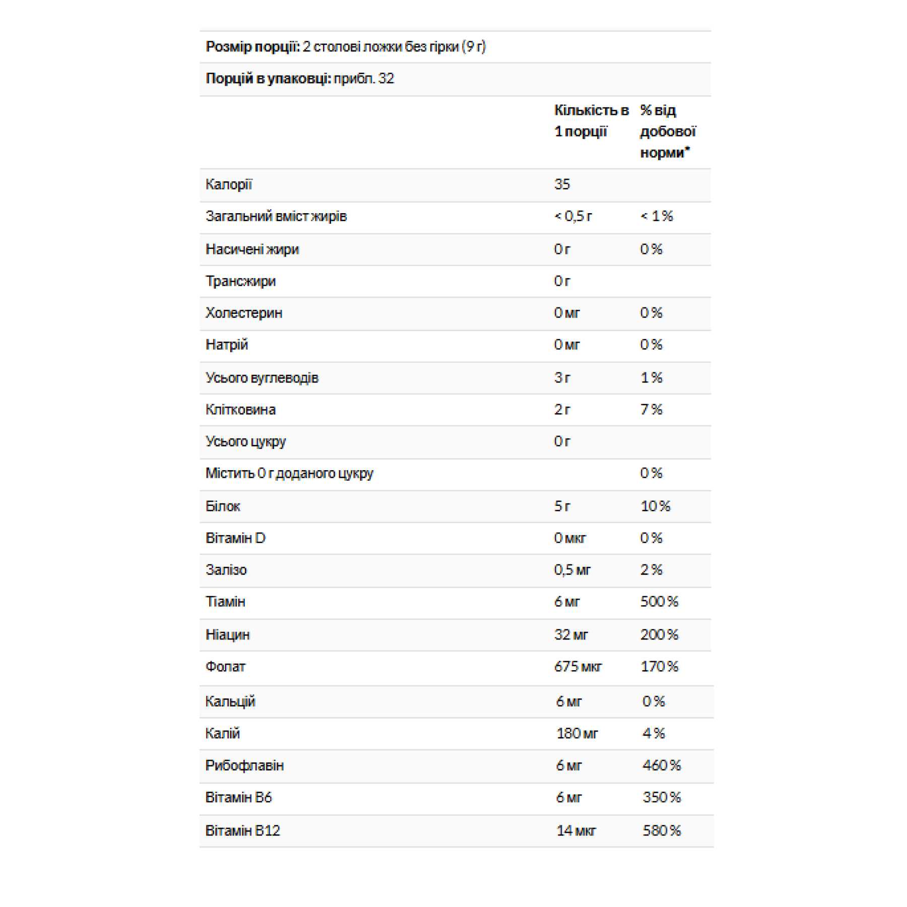 Сухі дріжджі, ніацин, піридоксину гідрохлорид (В6), рибофлавін, гідрохлорид тіаміну (тіамін), фолієва кислота, кобаламін (В12).