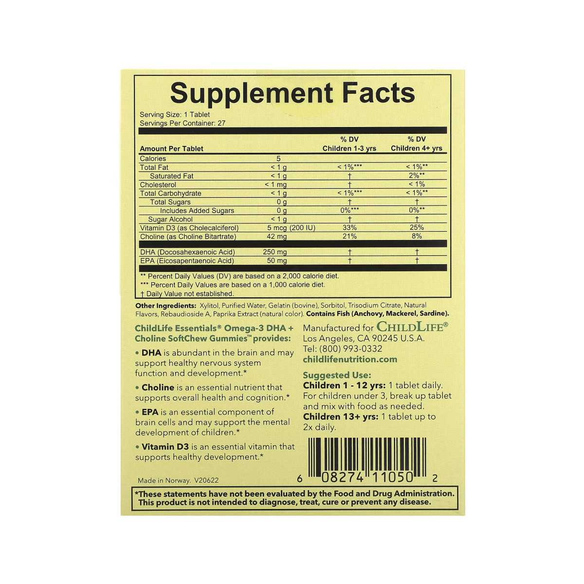 ДГК омега-3 ChildLife® і холін SoftMelts™