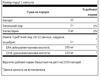 Забезпечує 180 мг EPA плюс 120 мг DHA