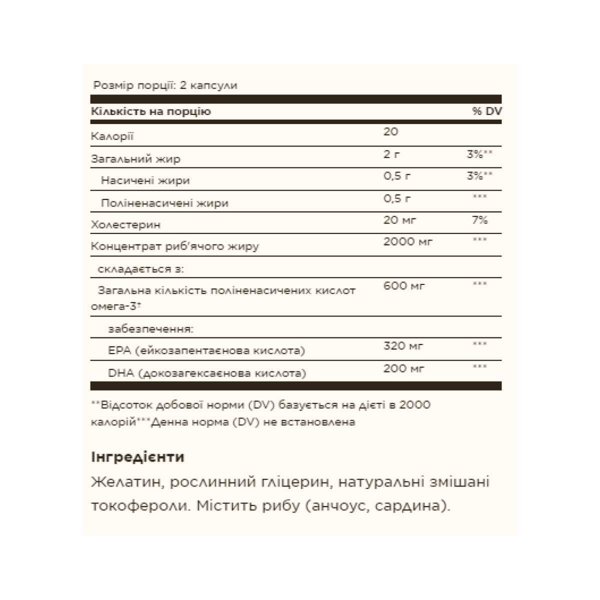Ця формула — це природне, концентроване джерело жирних кислот омега-3 ЕПК та ДГК із глибоко- й холодноводних риб. ЕПК і ДГК підтримують здоров’я серцево-судинної системи, суглобів та нормальний обмін речовин. Риб’ячий жир у цій формулі перевірено на оптимальну чистоту. Він піддається молекулярній дистиляції для очищення від ртуті.