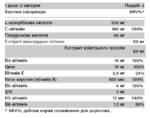 Інгредієнти : восковий кукурудзяний крохмаль, харчовий желатин, екстракт Enothera biennis (насіння) 4:1, L-аскорбінова кислота, гіалуронова кислота, Vitis vinifera (насіння) 120:1 екстракт, екстракт Centella Asiatica (ціла рослина), ніацин, оксид цинку, DL- Альфа-токоферил ацетат, бета-каротин, пантотенова кислота, Q10, колір (оксид заліза), холекальциферол, піридоксину гідрохлорид.