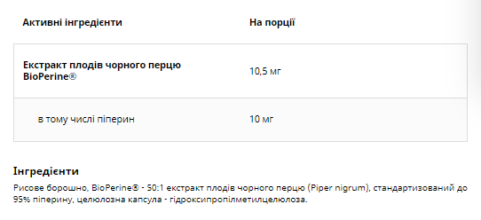 Натуральний рослинний екстракт плодів чорного перцю (Piper nigrum).