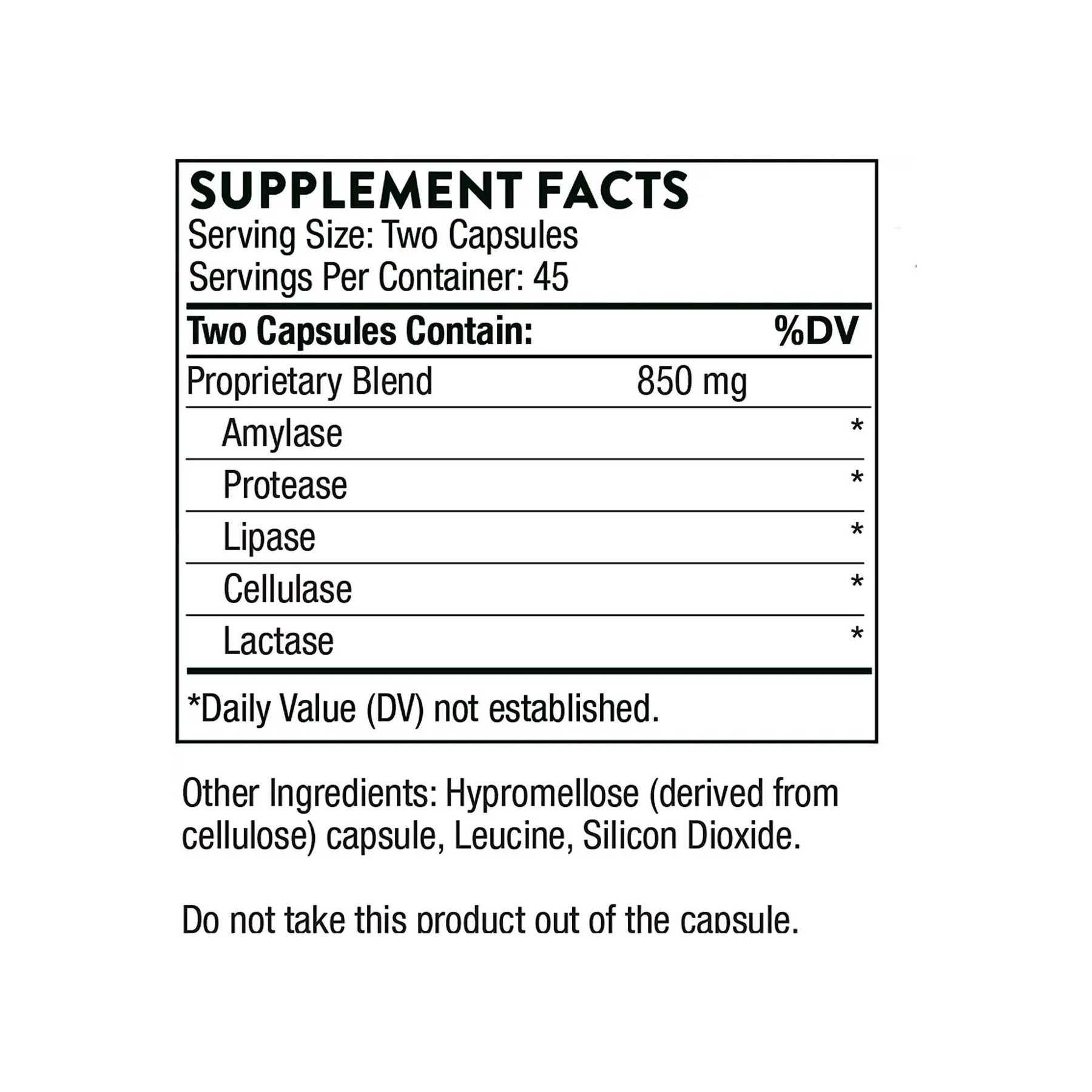 амілаза (для травлення крохмалю), протеаза (для травлення білків), ліпаза (для травлення жирів), целюлоза (для травлення вуглеводів) і лактаза (для травлення лактози).