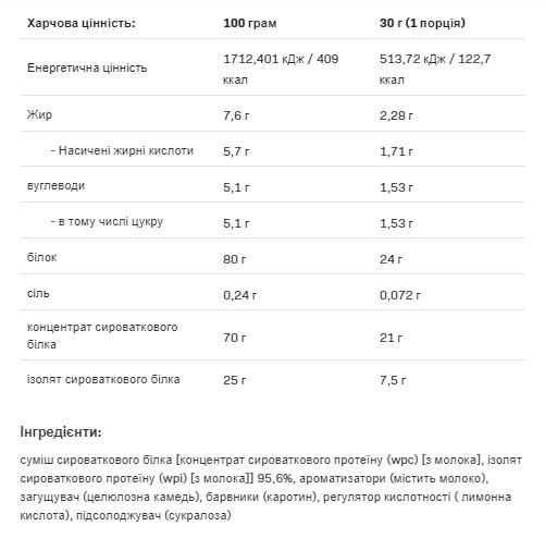 Змішайте 1 порцію (30 г) з 200 мл води або знежиреного молока.